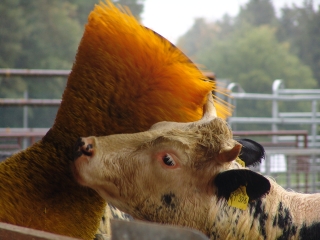 und die Rinder können sich frei bewegen und sich sogar das Fell mit der elektrischen Bürste bürsten lassen.